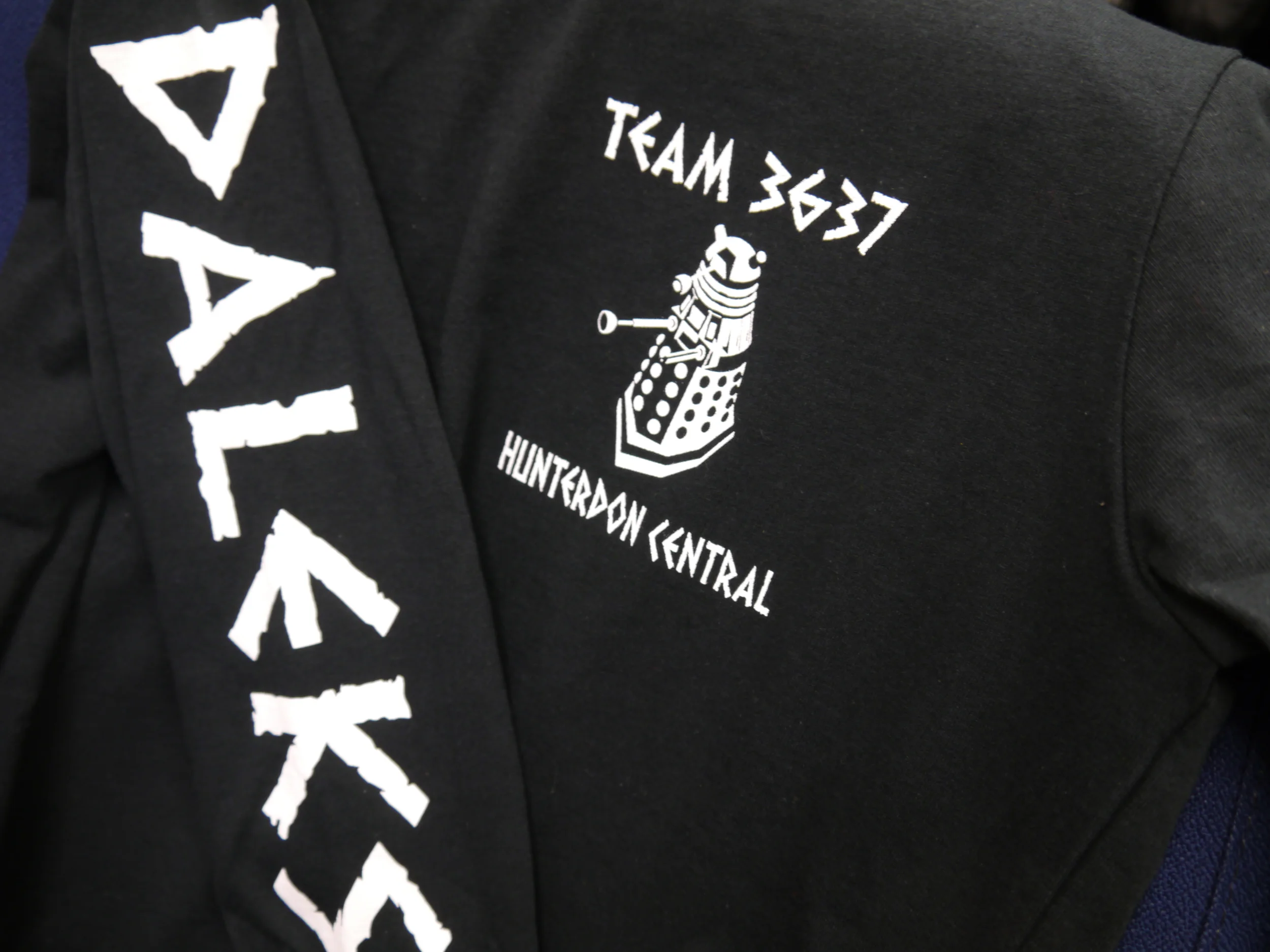 Last week we completed a unique contract screen printing job for a robotics club that modeled their name and logo after the Doctor Who SyFy series. The club calls themselves "The Daleks" and while I only know a bit about the British origin SyFy show Dr. Who, I believe Daleks are robots or half organic half robotic creatures set on killing humans.